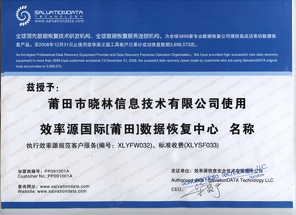 同時(shí)依托效率源數據恢復的數據恢復技術(shù)優(yōu)勢,發(fā)展硬盤(pán)數據恢復、閃存數據恢復以及企業(yè)IT外包數據恢復服務(wù)和電腦維修技術(shù)人員培訓等多領(lǐng)域業(yè)務(wù)。相信在“忠誠、機智、團結、進(jìn)取、執者、奉獻”的企業(yè)文化精神的倡導下,
