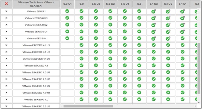 6.0 中的 VMware Tools 一直兼容到 ESX/ESXi 4.0!而 6.0 U1 中的工具可兼容回 ESXi 5.0。哇!