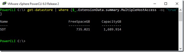獲取數據存儲 | 其中 {$_.ExtensionData.summary.MultipleHostAccess -eq “true”}