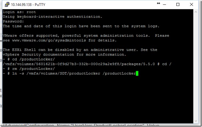 ln -s /vmfs/volumes/SDT/productLocker /productLocker